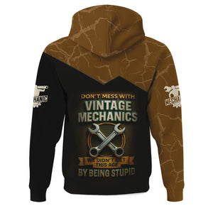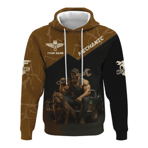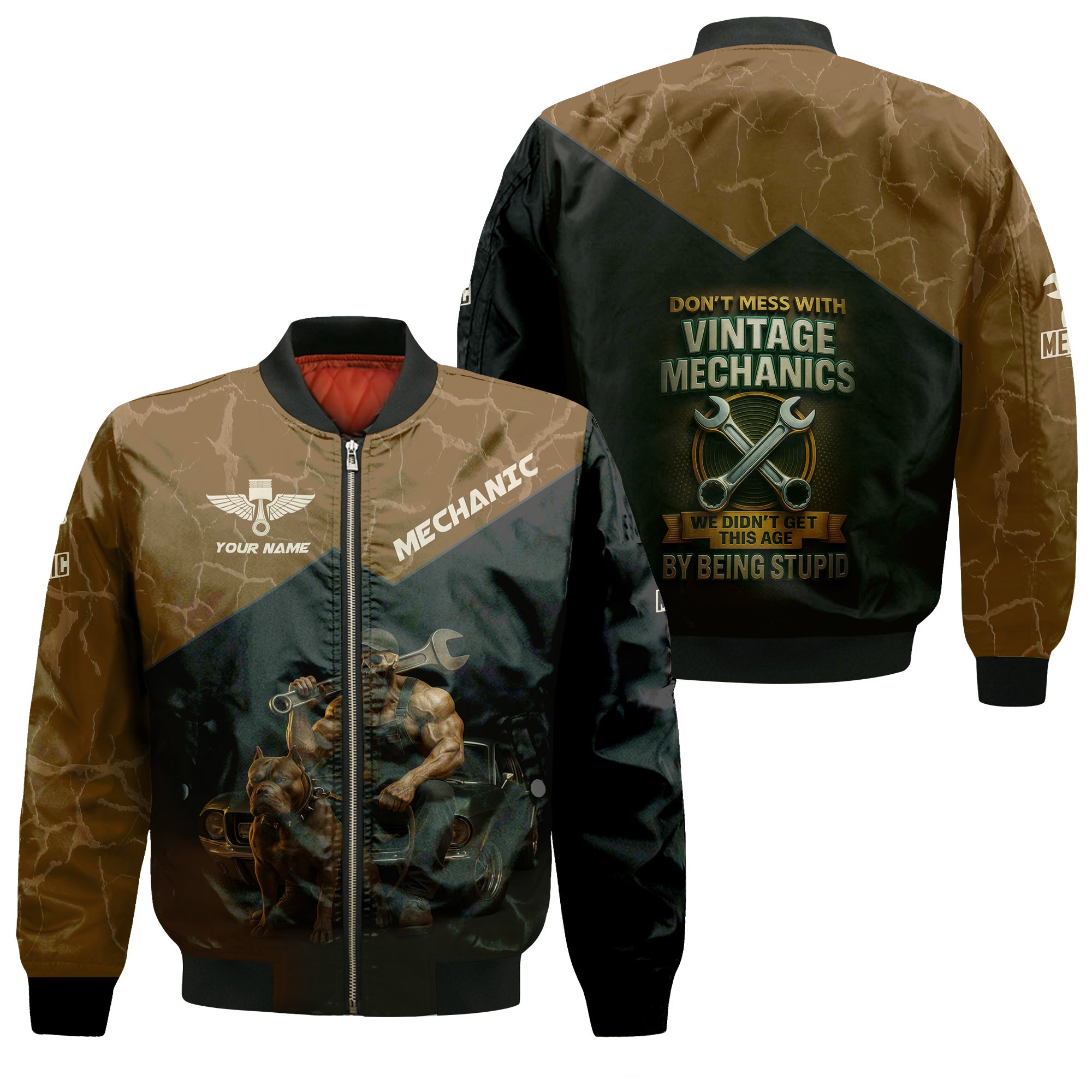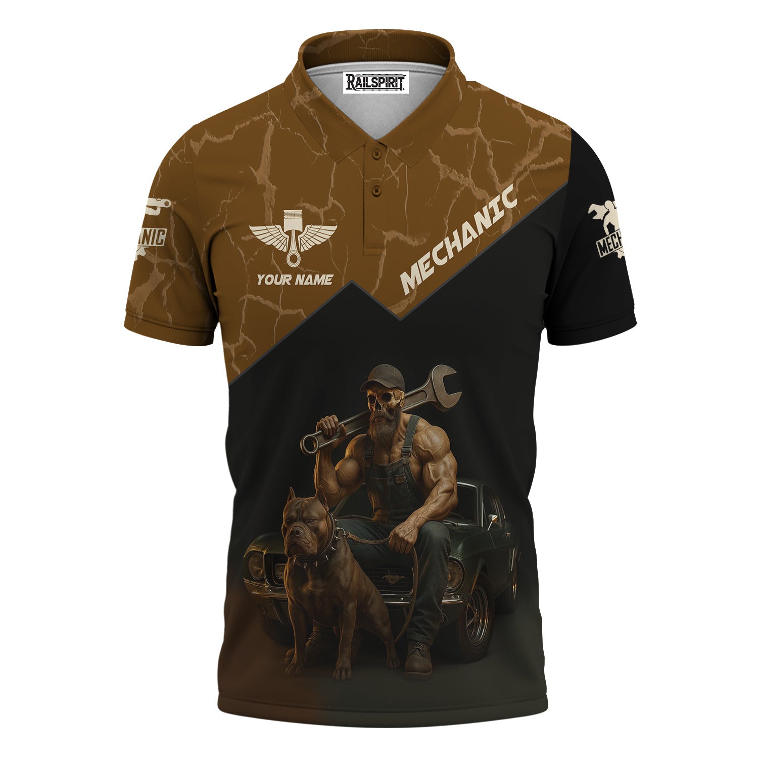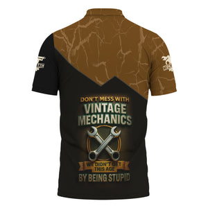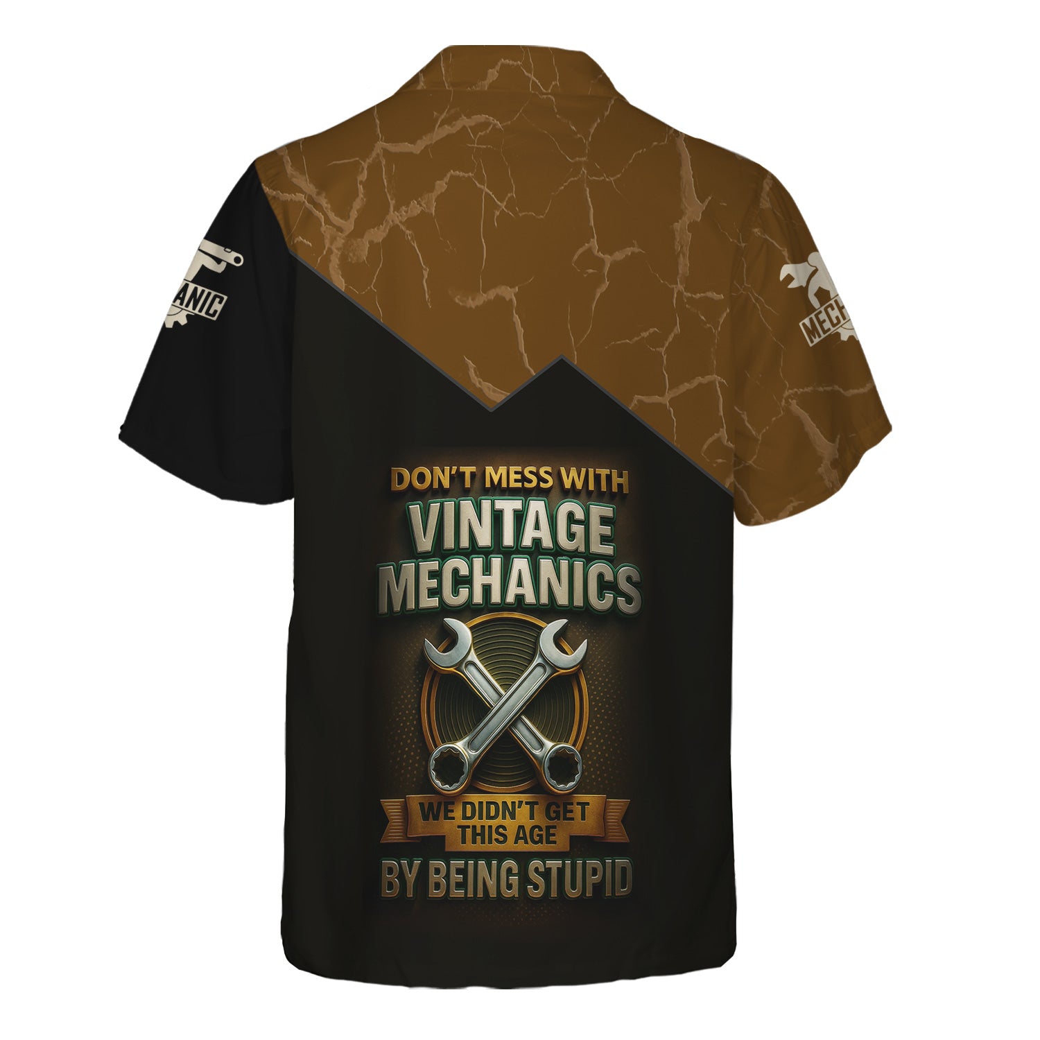 Personalized T-Shirt Don't Mess With Vintage Mechanics Skull with Dog and Classic Car Design Shirt For Mechanics
