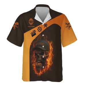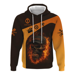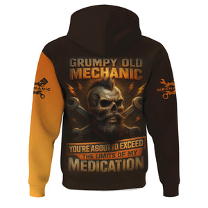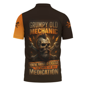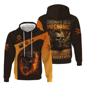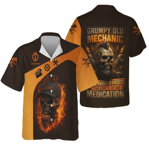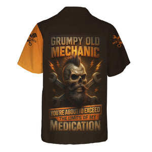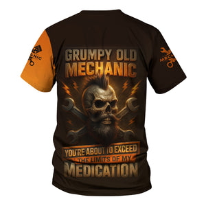 Personalized T-Shirt Grumpy Old Mechanic You're About To Exceed The Limits Of My Medication Flame Skull Design Shirt