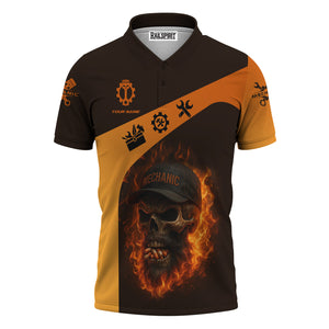 The print is awesome and the shirt fits just right. Perfect for any mechanic who loves bold style.