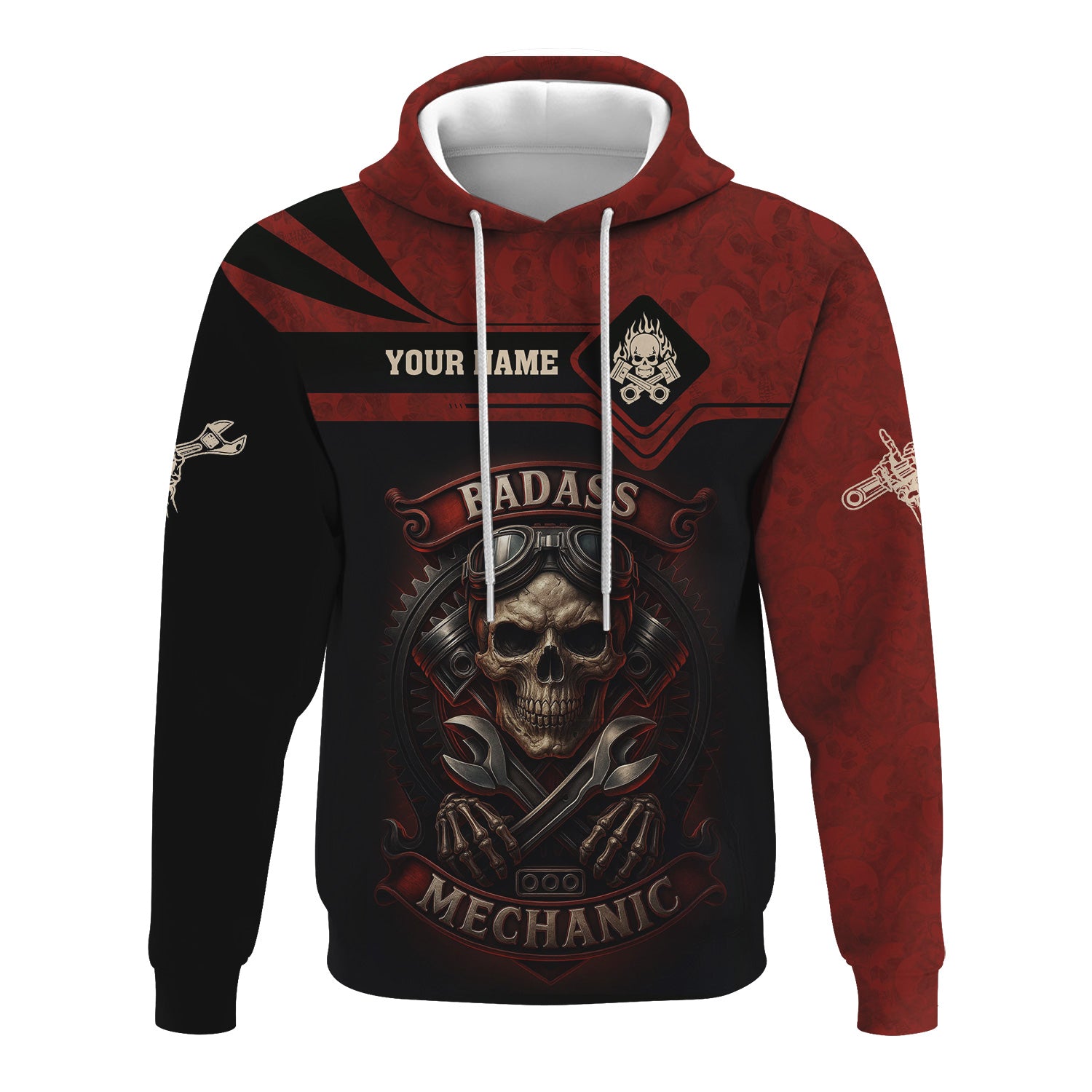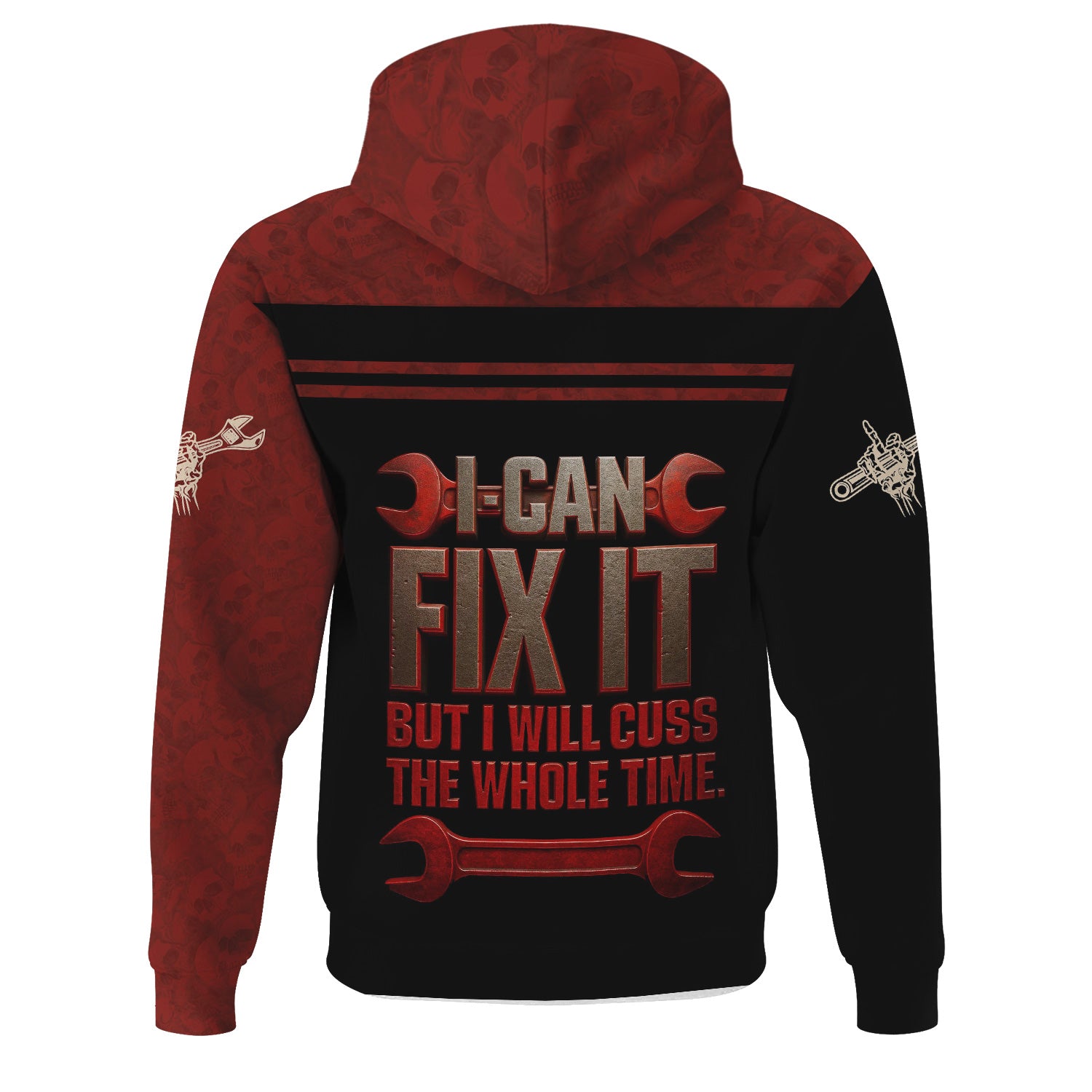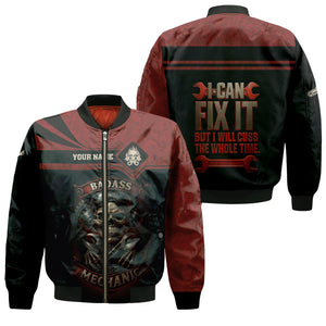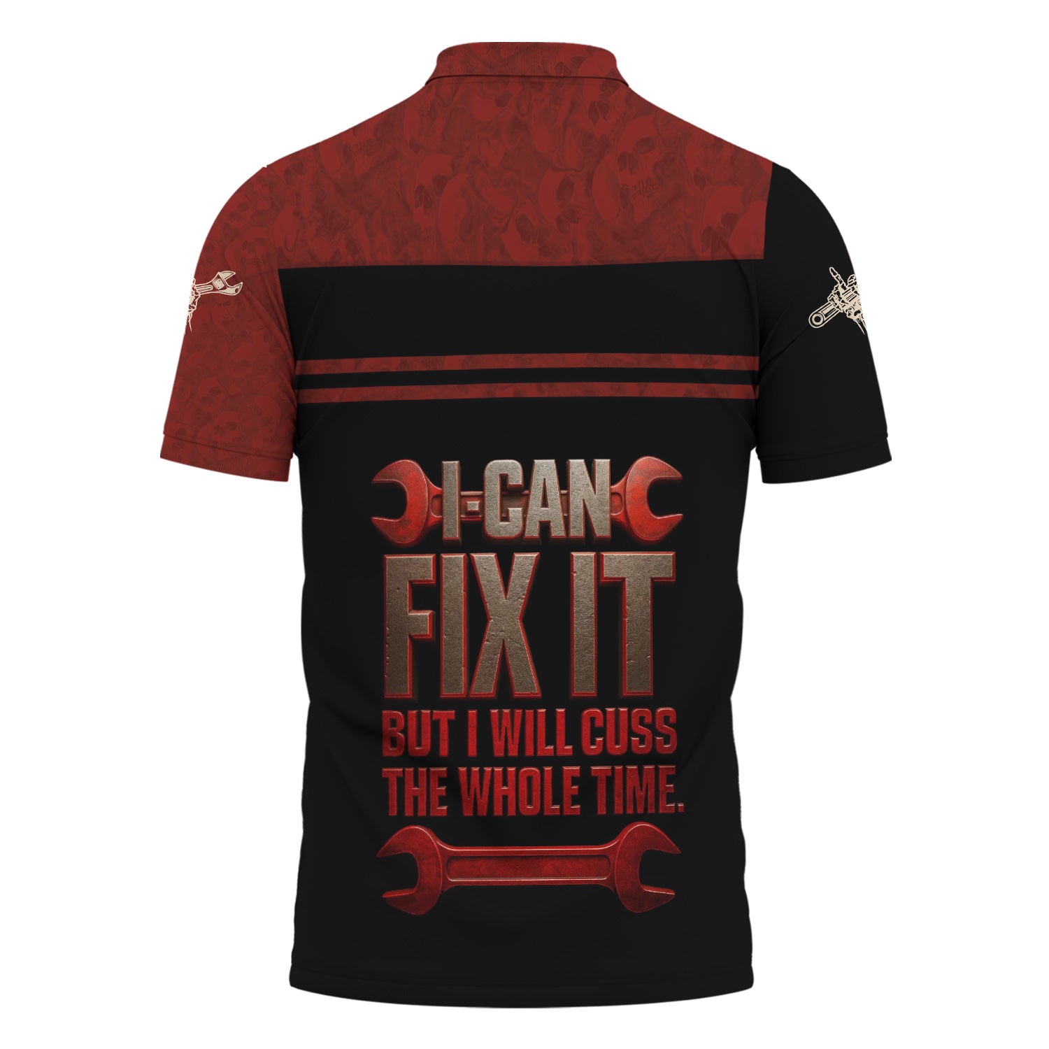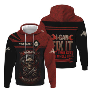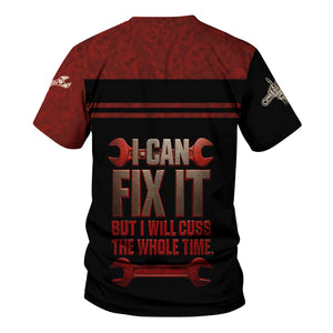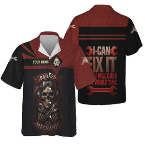 Personalized T-Shirt I Can Fix It But I Will Cuss The Whole Time Badas Mechanic Skull Style Shirt For Mechanics