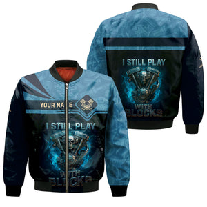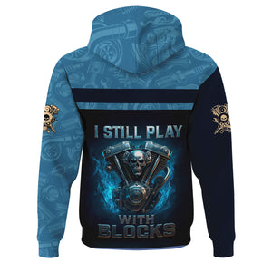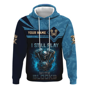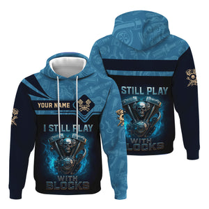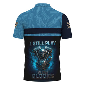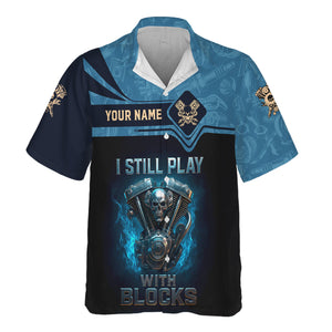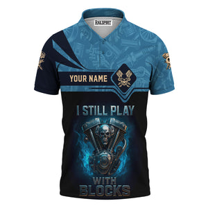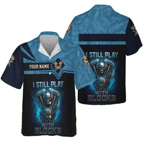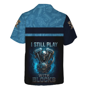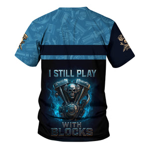 Personalized T-Shirt I Still Play With Blocks Flame Engine Skull Design Shirt for Mechanics