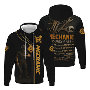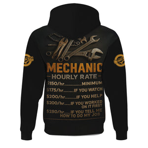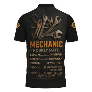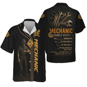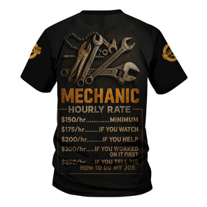 Personalized T-Shirt Mechanic Hourly Rate Skull Looking Watch Design Shirt for Mechanics