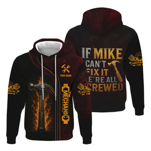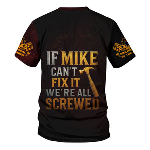 Personalized T-Shirt If Mike Can't Fix It We're All Screwed Hammer Skull Design Shirt for Mechanics