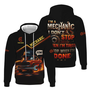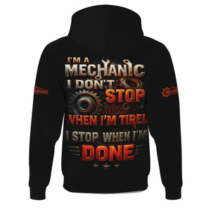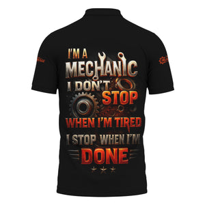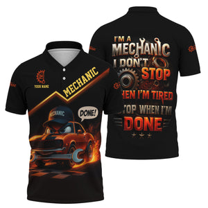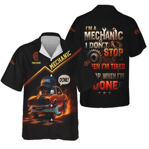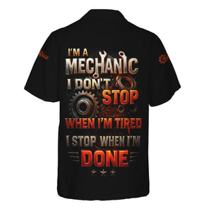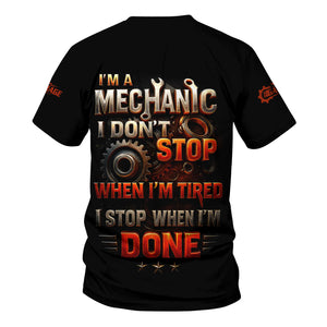 Personalized T-Shirt I'm A Mechanic I Don't Stop When I'm Tired I Stop When I'm Done Funny Car Design Shirt for Mechanics