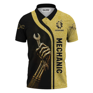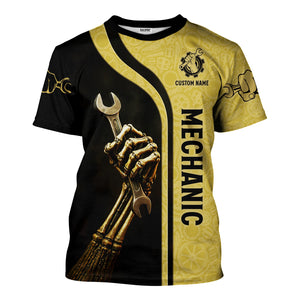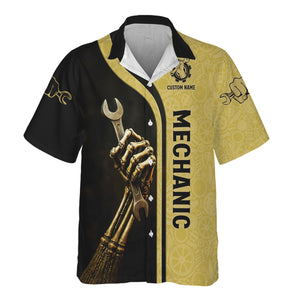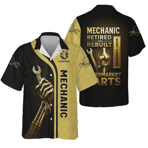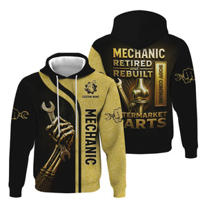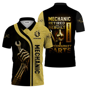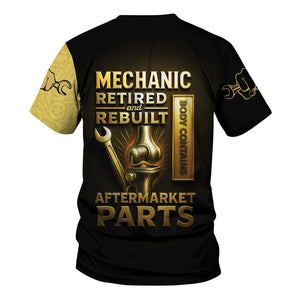 Personalized T-Shirt Mechanic Retired And Rebuilt Body Contains Aftermarket Parts Bony Hand Design Shirt