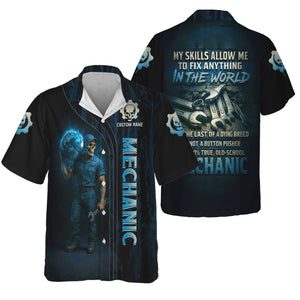 The print is awesome and the shirt fits just right. Perfect for any mechanic who loves bold style.