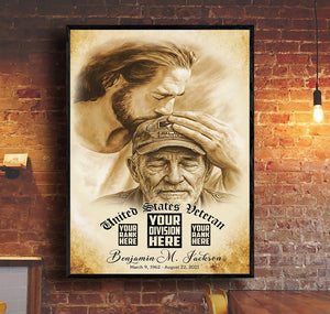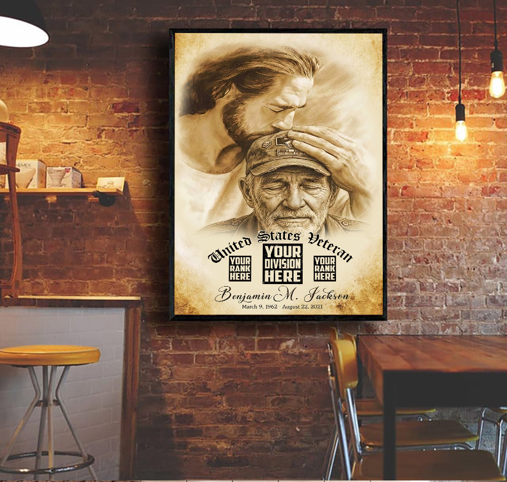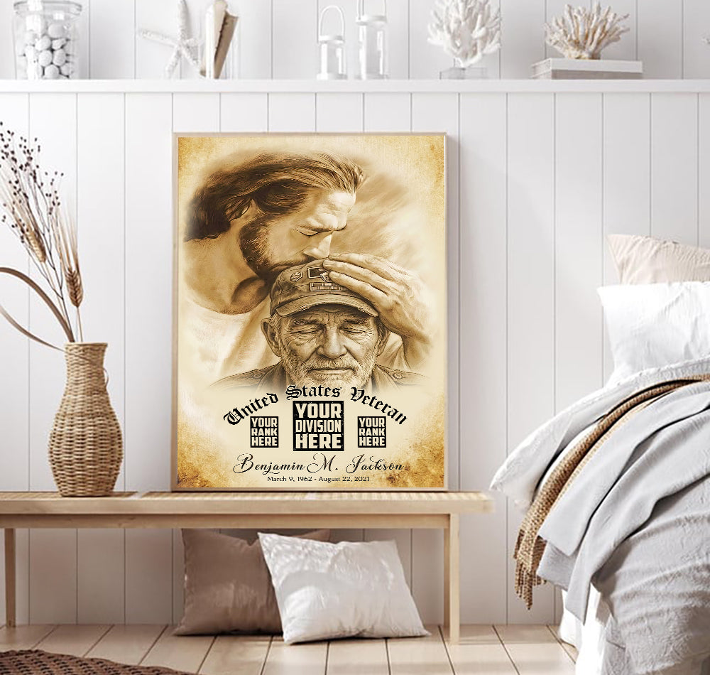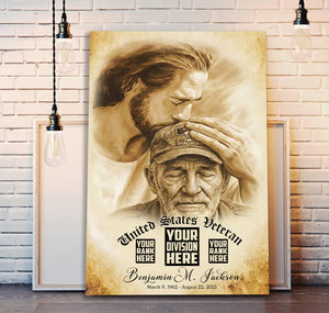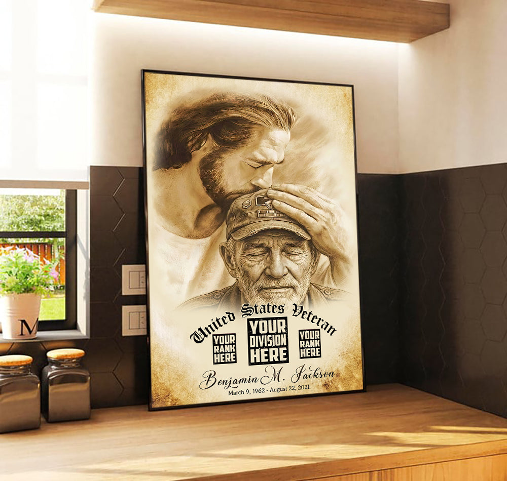 Custom Image Personalized Veteran Memorial Wall Art Canvas, Jesus Honoring Fallen Soldier, Custom Military Tribute Print, Gift for Veteran Family