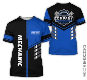 Personalized Work Shirt for Mechanics, Navy 3D Printed Uniform for Men, Perfect Gift for Car Lovers and Garage Workers