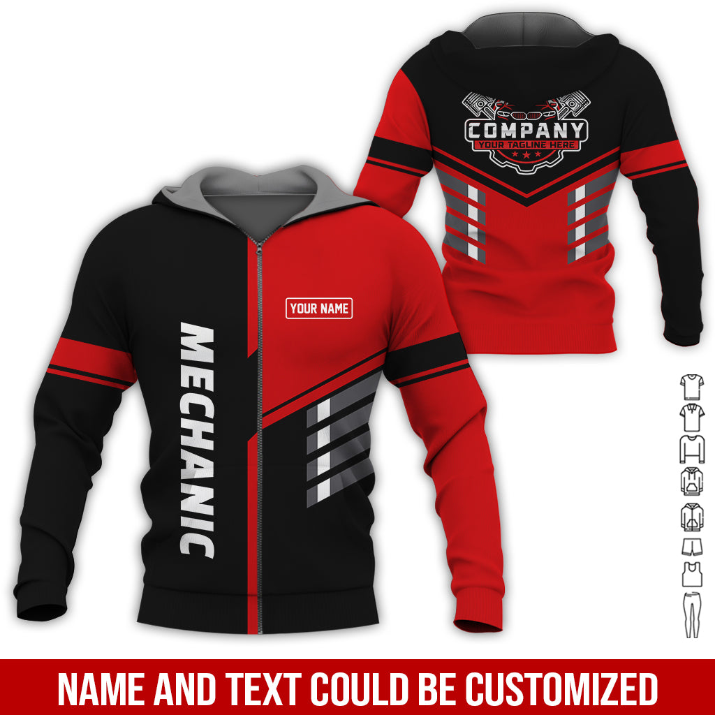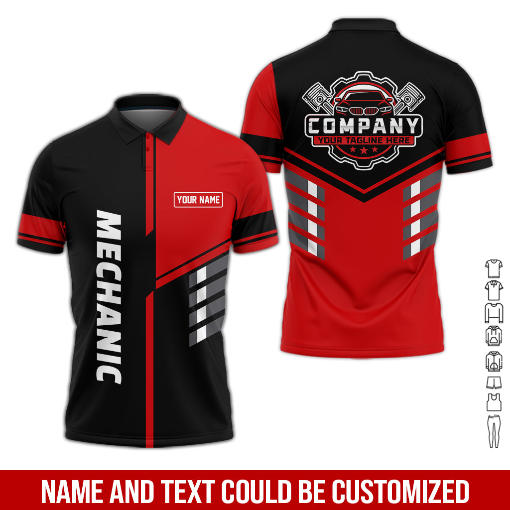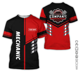 Personalized Work Shirt for Mechanics, Red 3D Printed Uniform for Men, Perfect Gift for Car Lovers and Garage Workers
