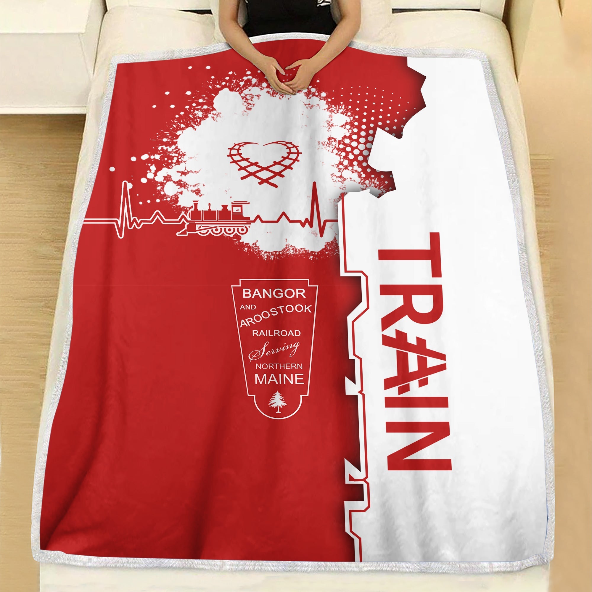 Railspirit Bangor And Aroostook Railroad Blanket Engine Heartbeat and Track Love Style Blanket Gift Idea For Train Lovers
