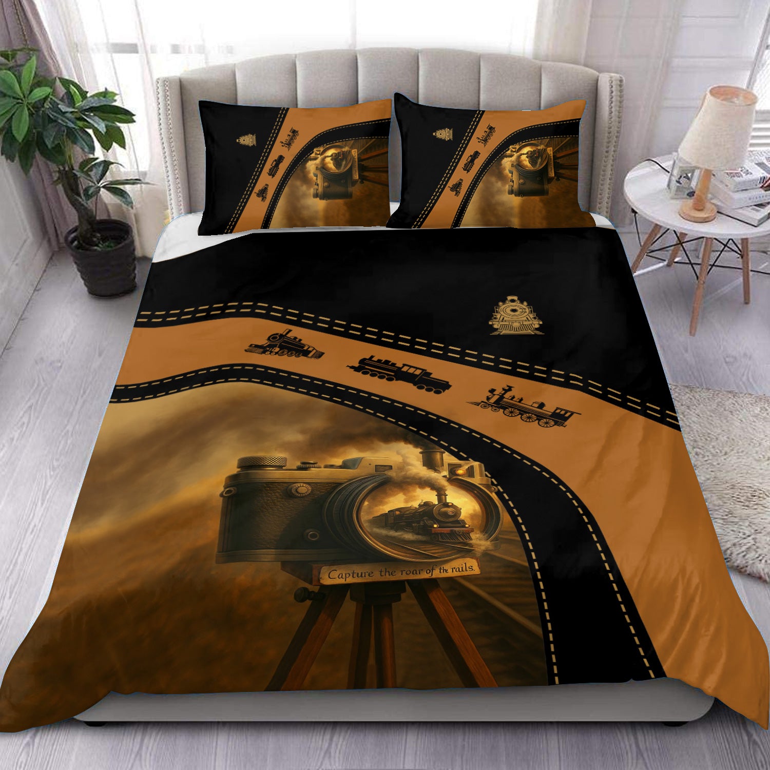 Railspirit Bedding Set Vintage Camera Capture the Roar of the Rails Bedding Set for Train Enthusiast