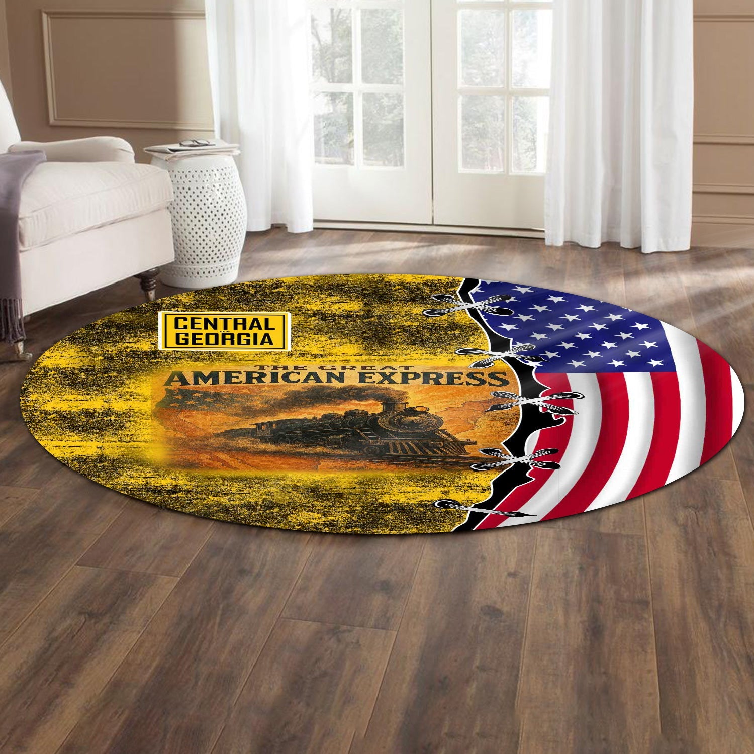 Railspirit Central of Georgia Railway Round Mat Retro American Express Train With USA Flag Round Mat