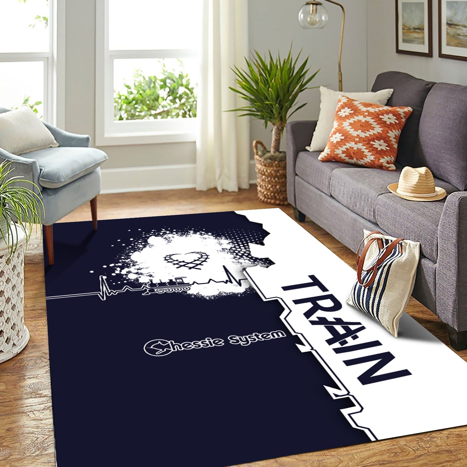 Railspirit Chessie System Railroad Area Rug Engine Heartbeat and Track Love Style Rug Gift Idea For Train Lovers