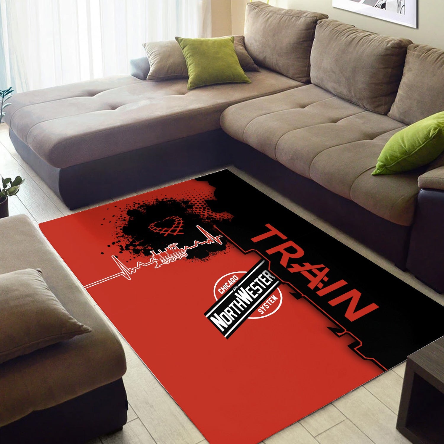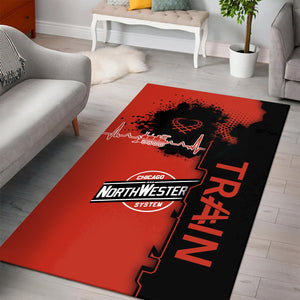 Railspirit Chicago and North Western Railway Area Rug Engine Heartbeat and Track Love Style Rug Gift Idea For Train Lovers