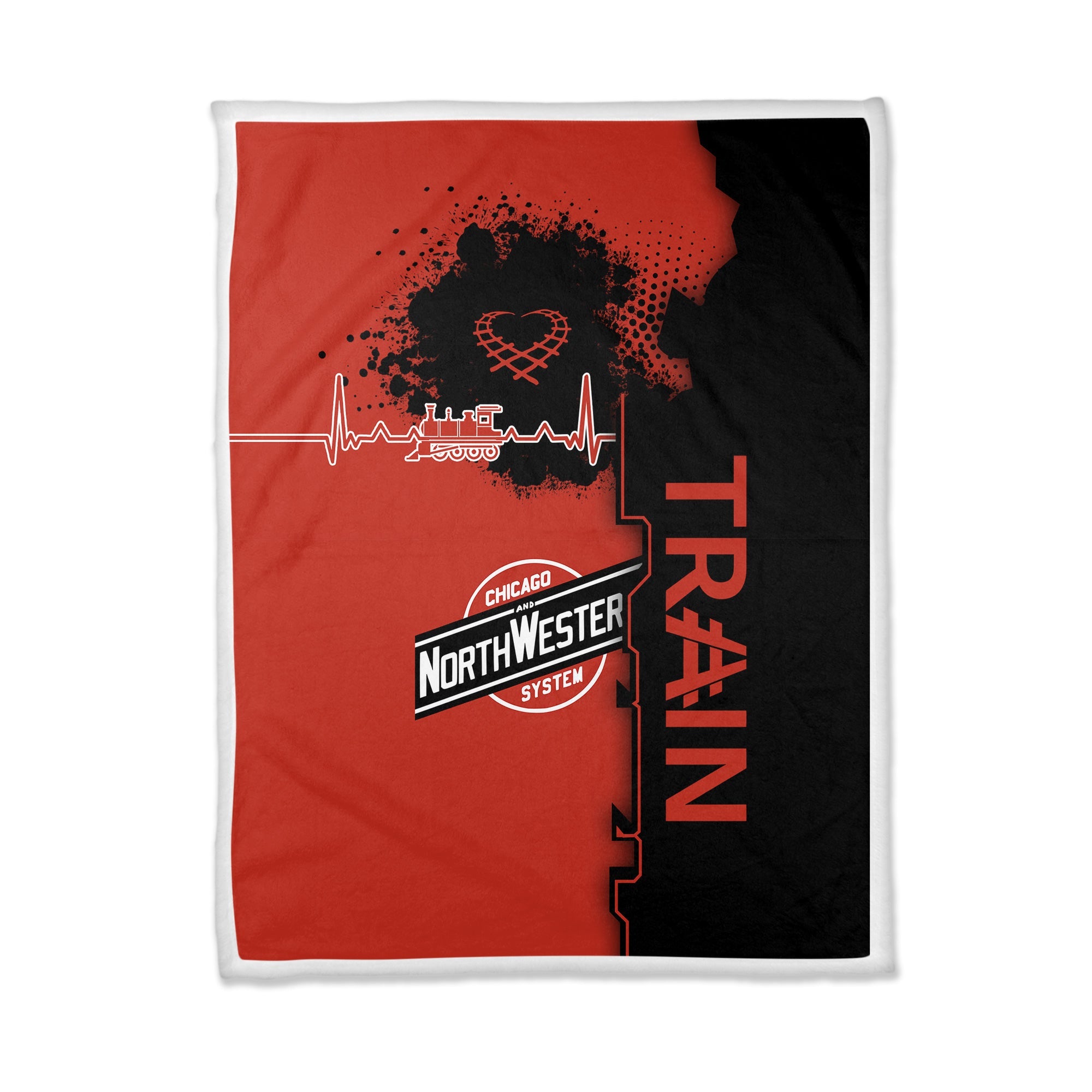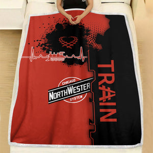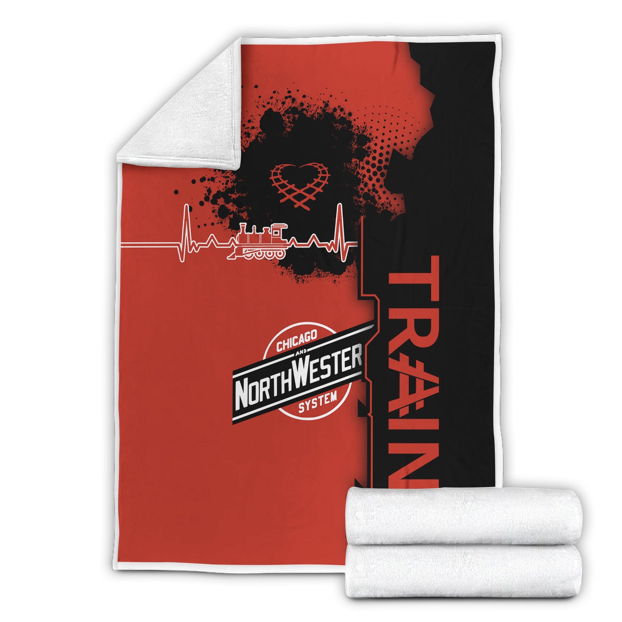 Railspirit Chicago and North Western Railway Blanket Engine Heartbeat and Track Love Style Blanket Gift Idea For Train Lovers