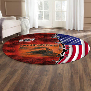 Railspirit Chicago and North Western Railway Round Mat Retro American Express Train With USA Flag Round Mat