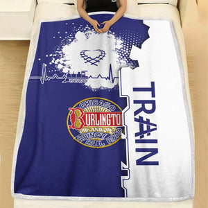 Railspirit Chicago, Burlington and Quincy Railroad Blanket Engine Heartbeat and Track Love Style Blanket Gift Idea For Train Lovers