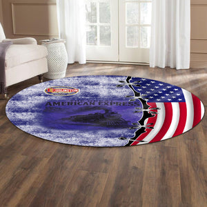 Railspirit Chicago, Burlington and Quincy Railroad Round Mat Retro American Express Train With USA Flag Round Mat