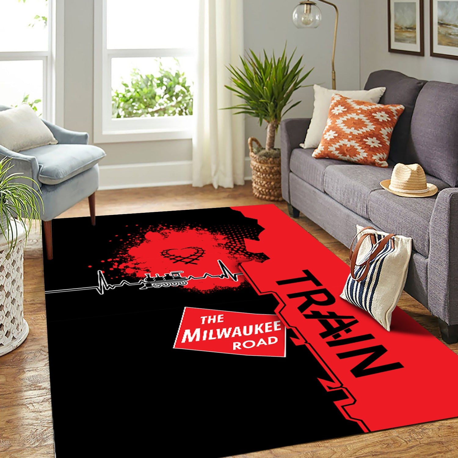 Railspirit Chicago, Milwaukee, St. Paul and Pacific Railroad Area Rug Engine Heartbeat and Track Love Style Milwaukee Road Rug Gift For Train Lovers