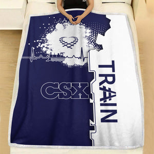 Railspirit CSX Transportation Railroad Blanket Engine Heartbeat and Track Love Style Blanket Gift Idea For Train Lovers