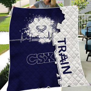 Railspirit CSX Transportation Railroad Premium Quilts Engine Heartbeat and Track Love Style Quilts Gift Idea For Train Lovers