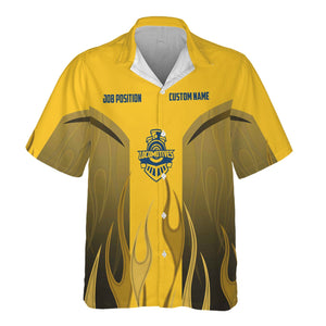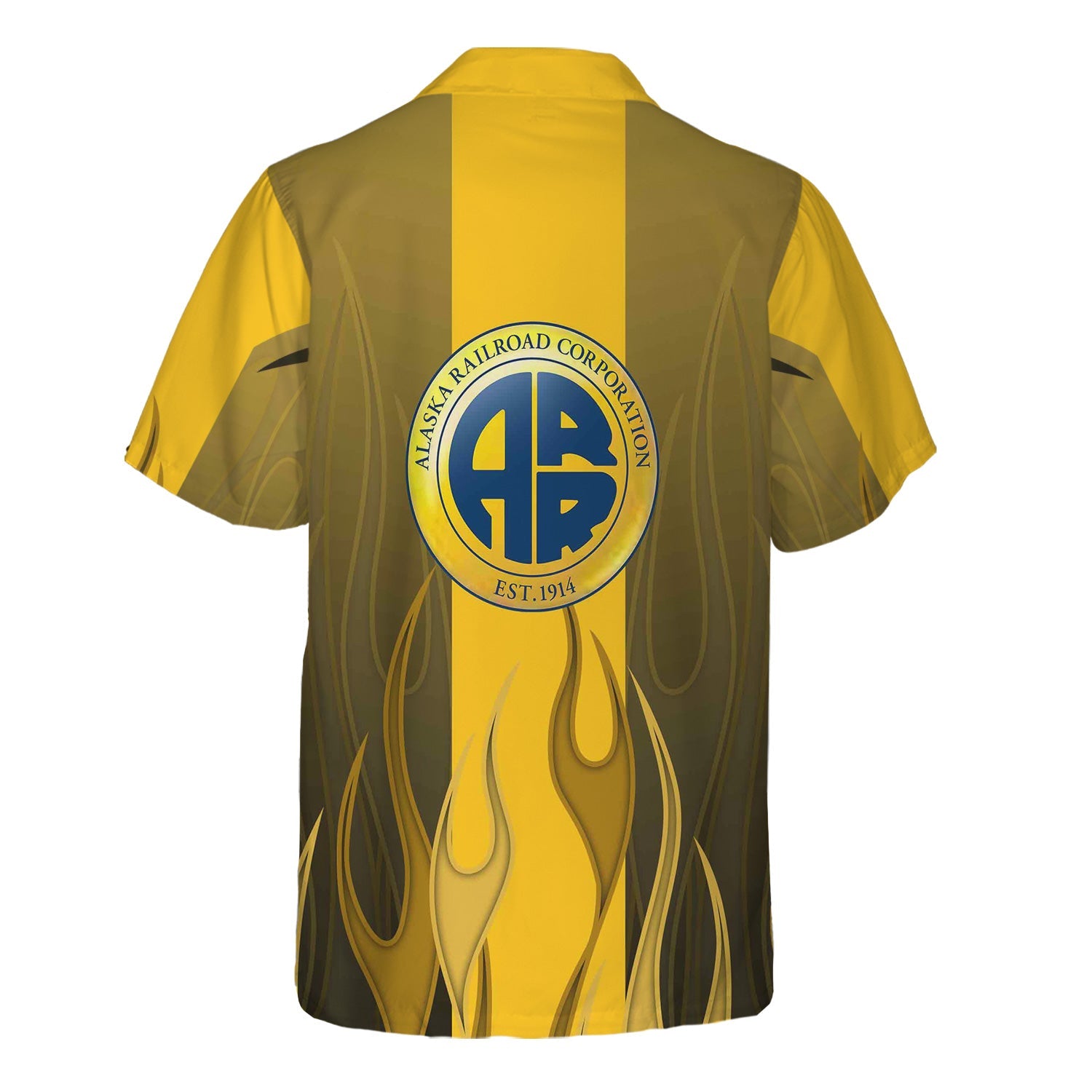 Railspirit Custom Name and Job Title Alaska Railroad Hawaiian Shirt Flame Graphic Train Shirt For Rail Workers
