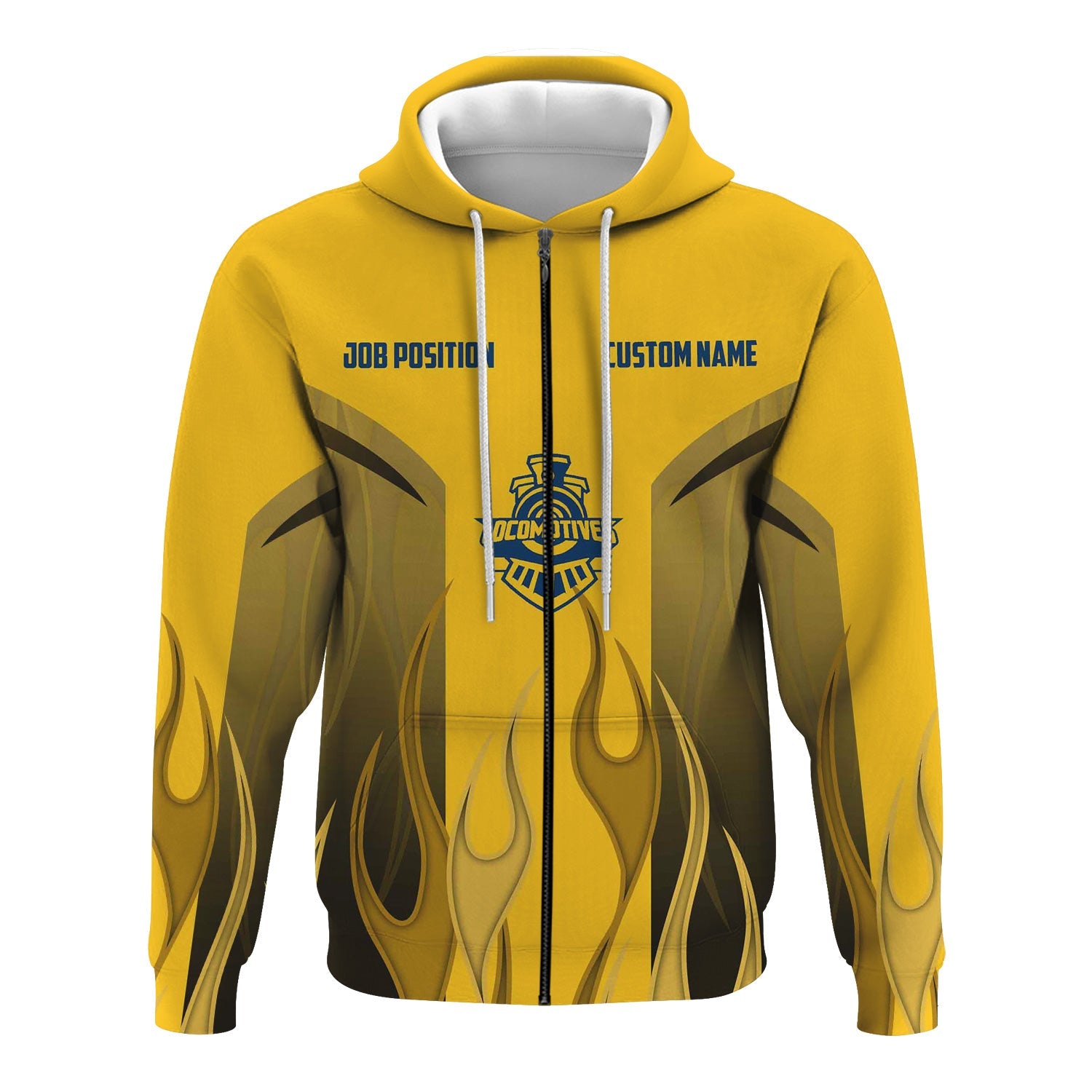 Railspirit Custom Name and Job Title Alaska Railroad Hoodie Flame Graphic Train Zip Up Hoodie