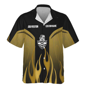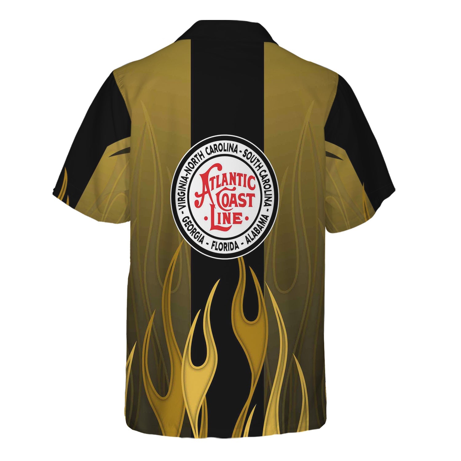 Railspirit Custom Name and Job Title Atlantic Coast Line Railroad Hawaiian Shirt Flame Graphic Train Shirt For Rail Workers