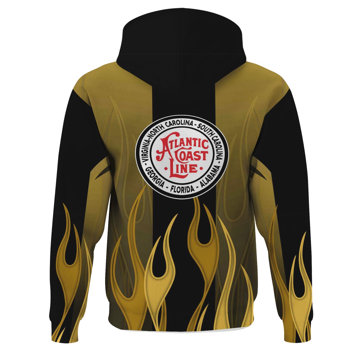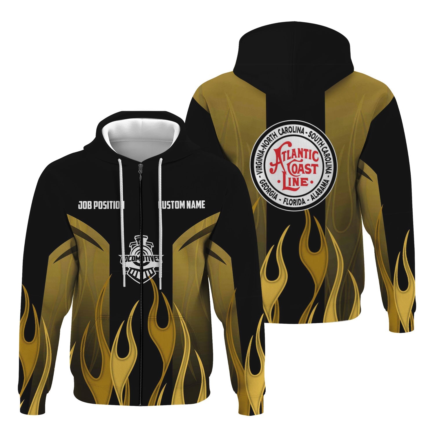 Railspirit Custom Name and Job Title Atlantic Coast Line Railroad Hoodie Flame Graphic Train Zip Up Hoodie