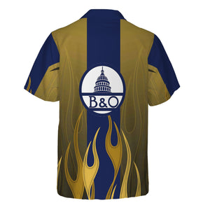 Railspirit Custom Name and Job Title Baltimore and Ohio Railroad Hawaiian Shirt Flame Graphic B&O Train Shirt For Rail Workers