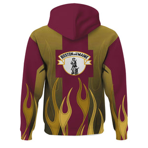 Railspirit Custom Name and Job Title Boston and Maine Railroad Hoodie Flame Graphic Train Zip Up Hoodie