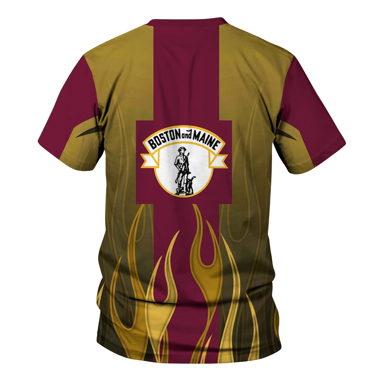 Railspirit Custom Name and Job Title Boston and Maine Railroad T-Shirt Flame Graphic Train Shirt