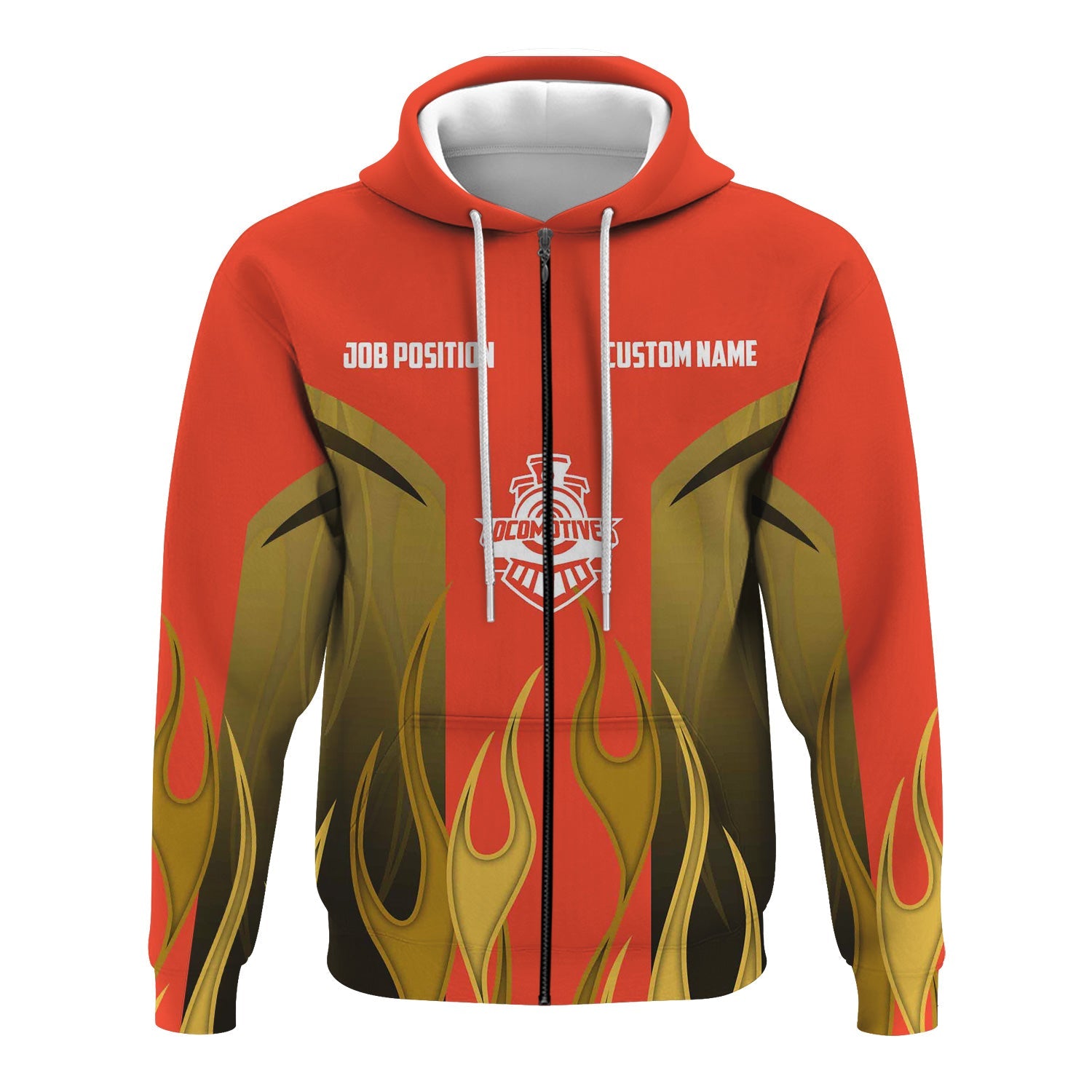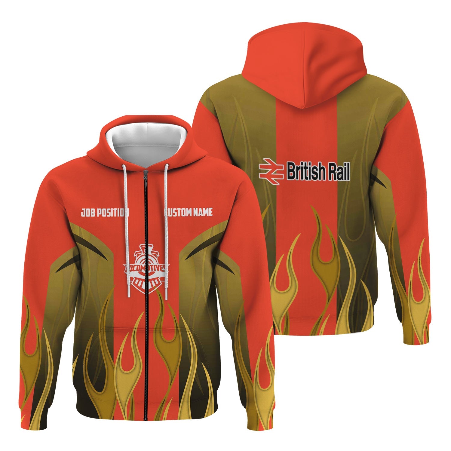 Railspirit Custom Name and Job Title British Railway Hoodie Flame Graphic Train Zip Up Hoodie