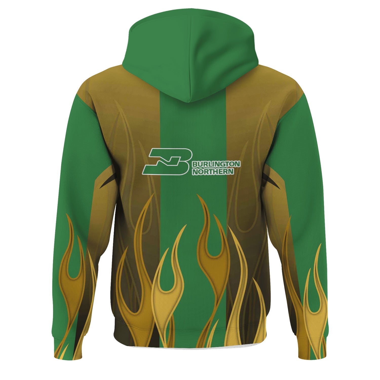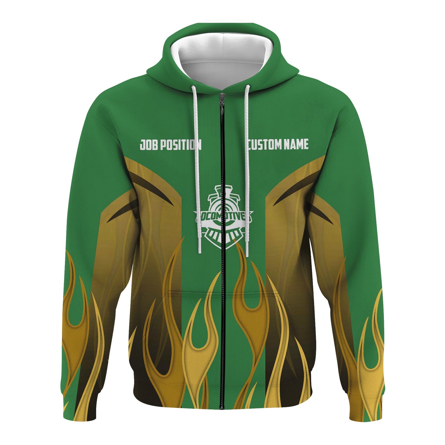 Railspirit Custom Name and Job Title Burlington Northern Railroad Hoodie Flame Graphic Train Zip Up Hoodie