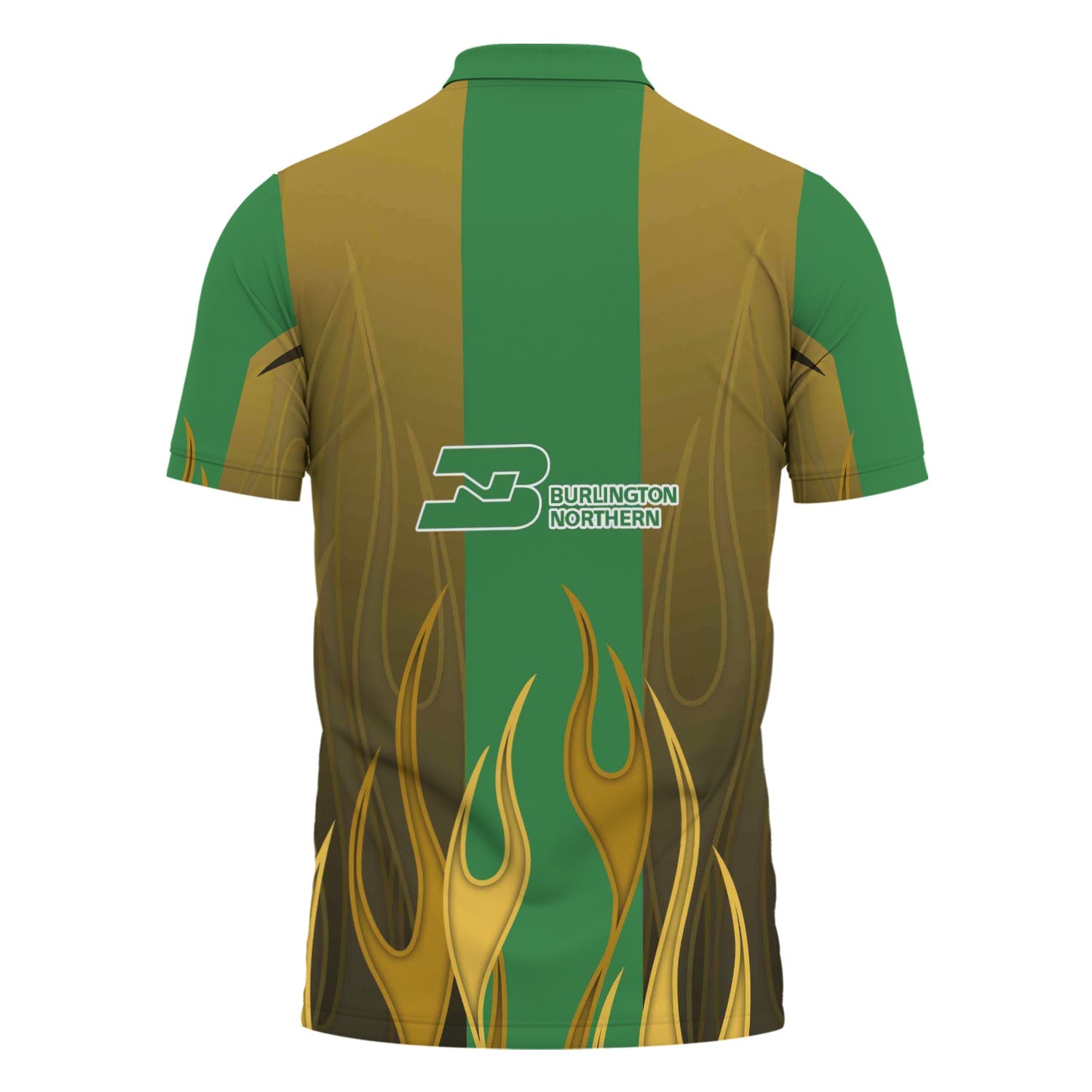 Railspirit Custom Name and Job Title Burlington Northern Railroad Polo Shirt Flame Graphic Train Shirt