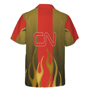 Railspirit Custom Name and Job Title Canadian National Railroad Hawaiian Shirt Flame Graphic Train Shirt For Rail Workers