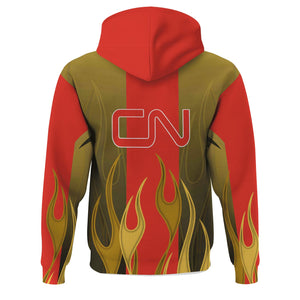 Railspirit Custom Name and Job Title Canadian National Railroad Hoodie Flame Graphic Train Zip Up Hoodie