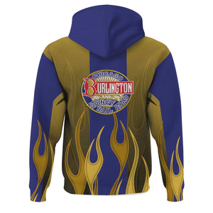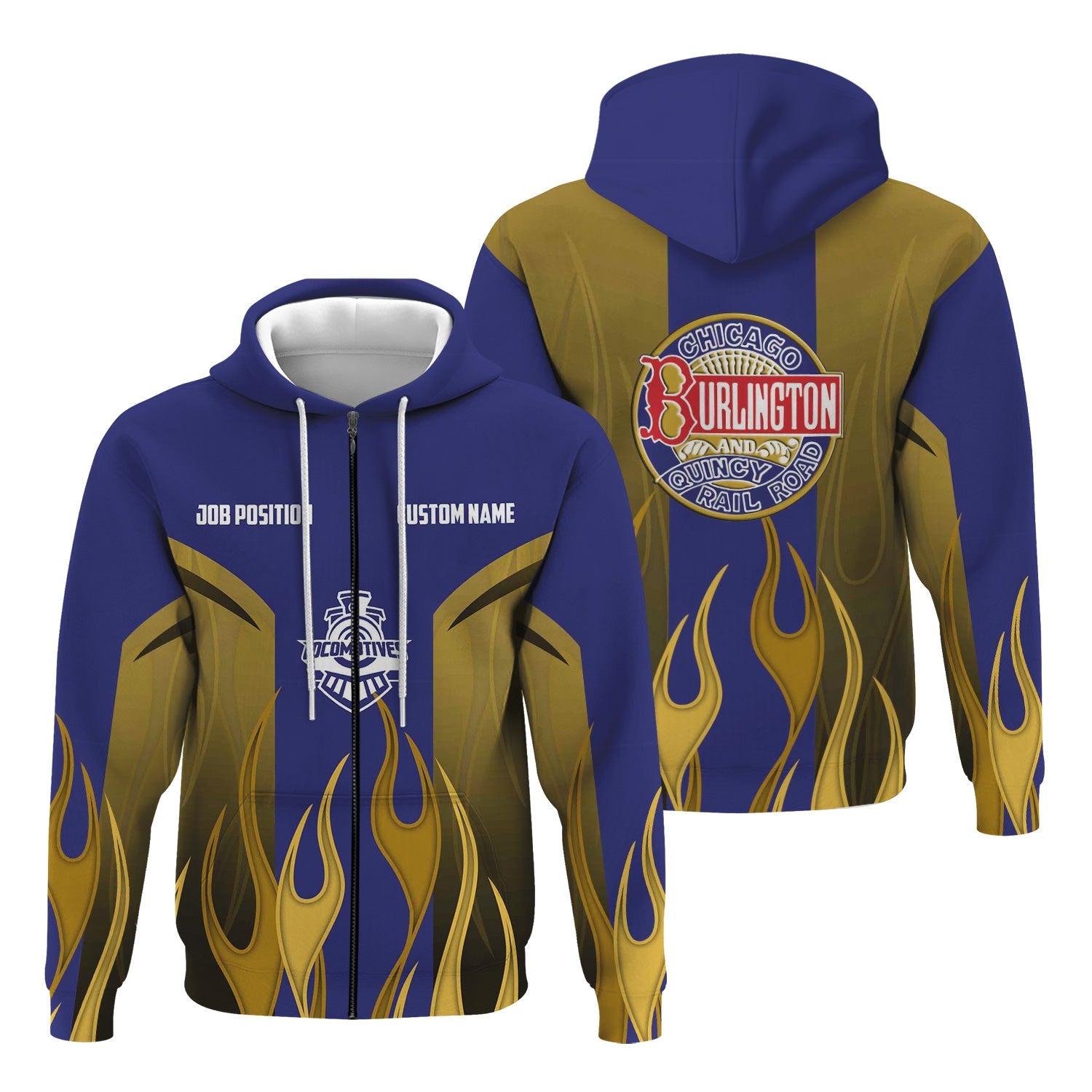 Railspirit Custom Name and Job Title Chicago, Burlington and Quincy Railroad Hoodie Flame Graphic Train Zip Up Hoodie