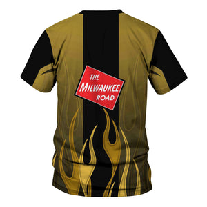 Railspirit Custom Name and Job Title Chicago, Milwaukee, St. Paul and Pacific Railroad T-Shirt Flame Graphic Milwaukee Road Train Shirt