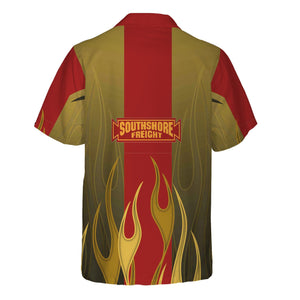 Railspirit Custom Name and Job Title Chicago South Shore and South Bend Railroad Hawaiian Shirt Flame Graphic Train Shirt For Rail Workers