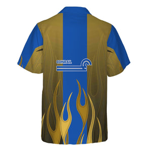 Railspirit Custom Name and Job Title Conrail Railroad Hawaiian Shirt Flame Graphic Train Shirt For Rail Workers