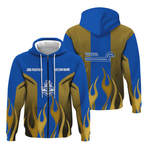 Railspirit Custom Name and Job Title Conrail Railroad Hoodie Flame Graphic Train Zip Up Hoodie