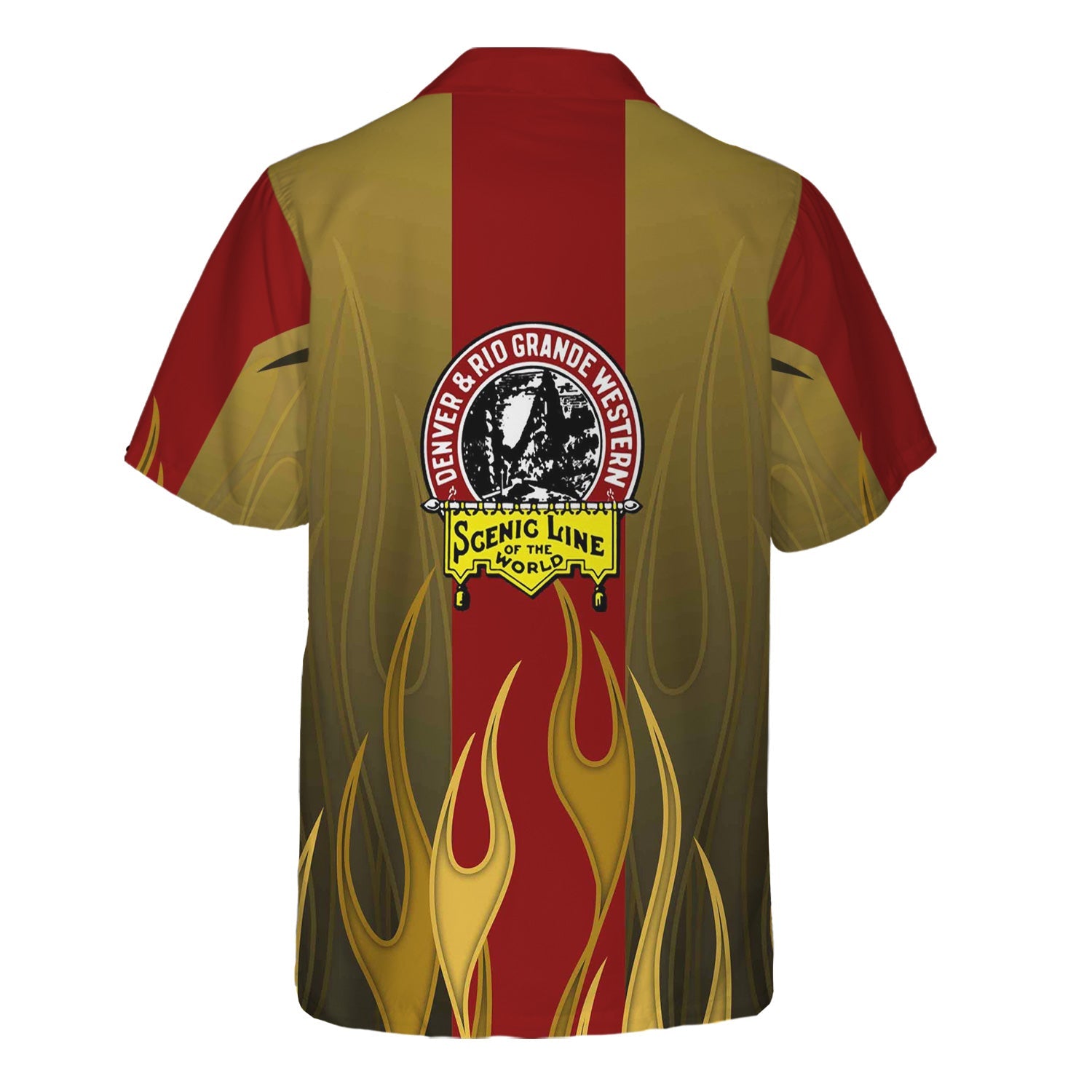 Railspirit Custom Name and Job Title Denver and Rio Grande Western Railroad Hawaiian Shirt Flame Graphic Train Shirt For Rail Workers
