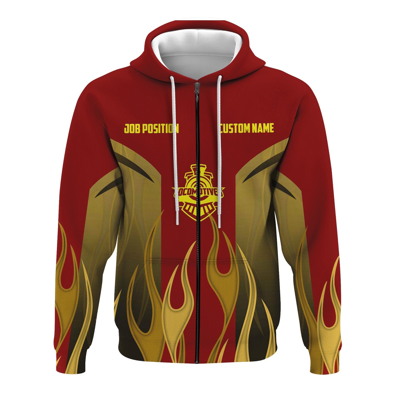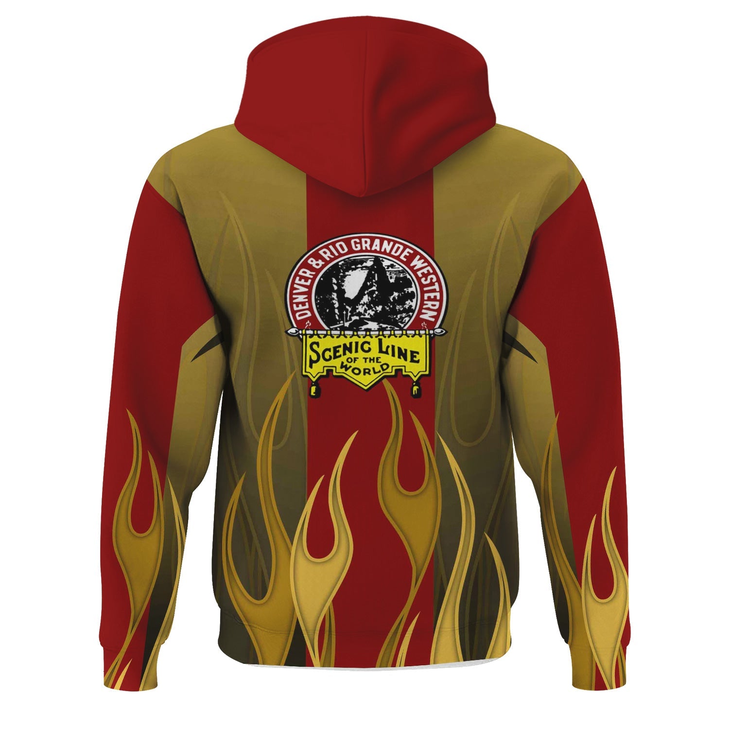 Railspirit Custom Name and Job Title Denver and Rio Grande Western Railroad Hoodie Flame Graphic Train Zip Up Hoodie