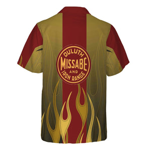 Railspirit Custom Name and Job Title Duluth, Missabe, & Iron Range Railroad Hawaiian Shirt Flame Graphic Train Shirt For Rail Workers