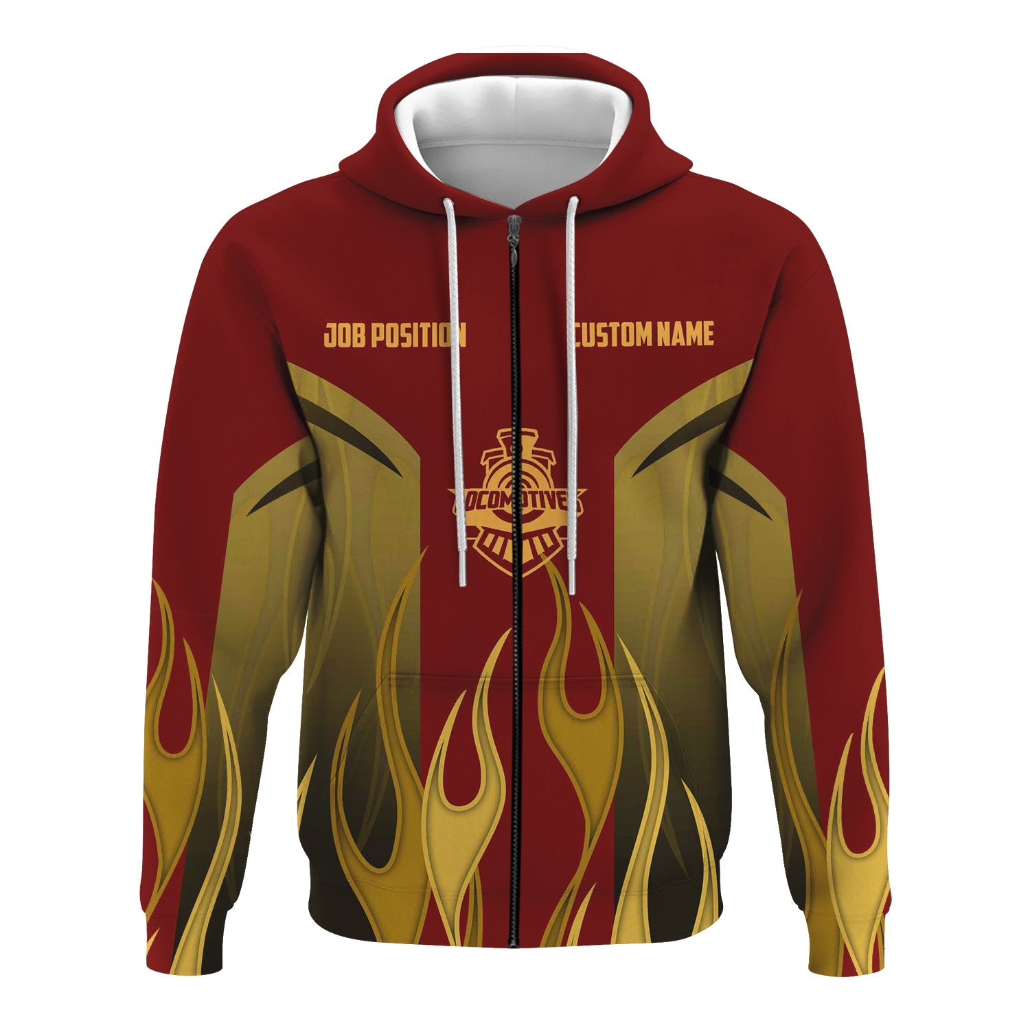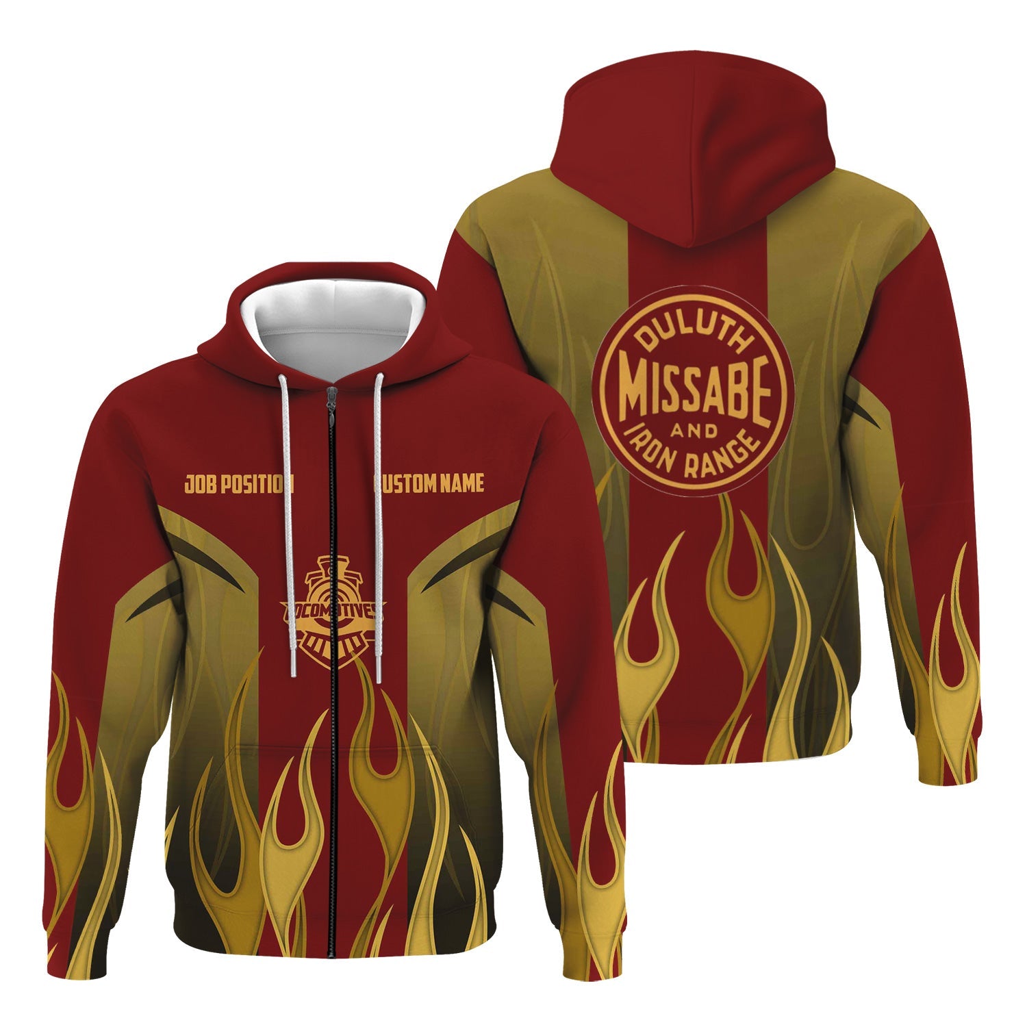 Railspirit Custom Name and Job Title Duluth, Missabe, & Iron Range Railroad Hoodie Flame Graphic Train Zip Up Hoodie