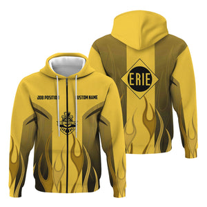 Railspirit Custom Name and Job Title Erie Railroad Hoodie Flame Graphic Train Zip Up Hoodie