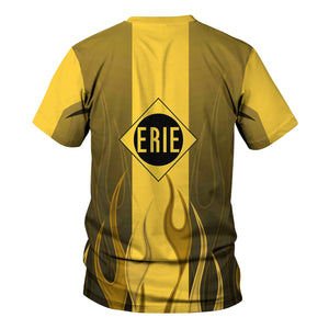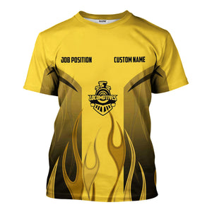 Railspirit Custom Name and Job Title Erie Railroad T-Shirt Flame Graphic Train Shirt