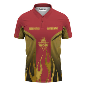 Railspirit Custom Name and Job Title Florida East Coast Railway Polo Shirt Flame Graphic Train Shirt