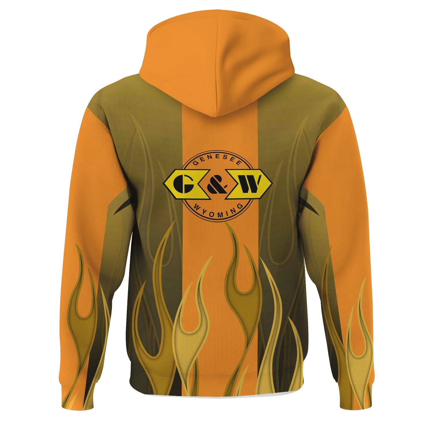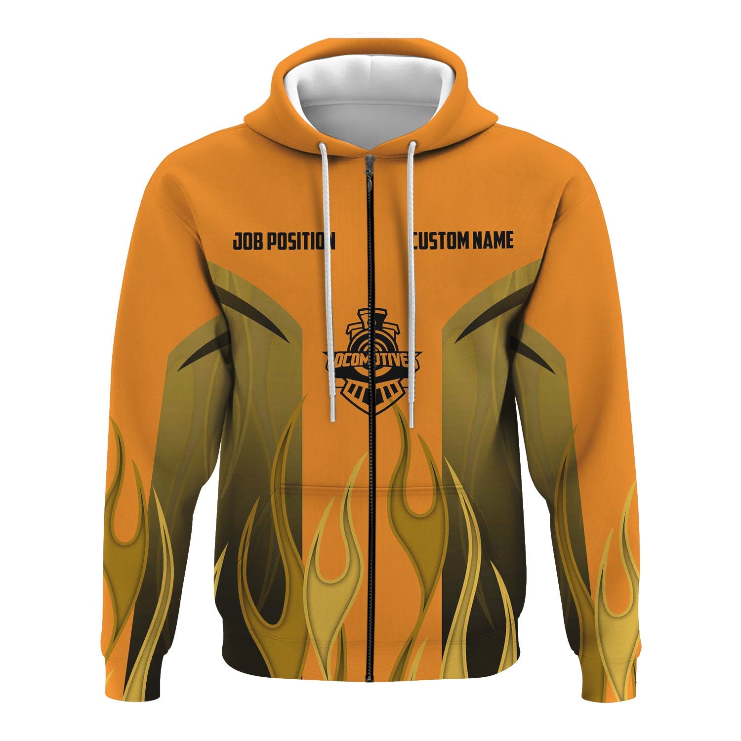 Railspirit Custom Name and Job Title Genesee & Wyoming Inc. Railroad Hoodie Flame Graphic Train Zip Up Hoodie